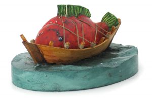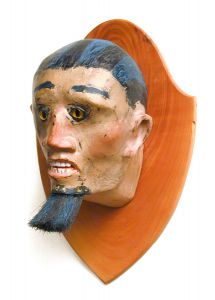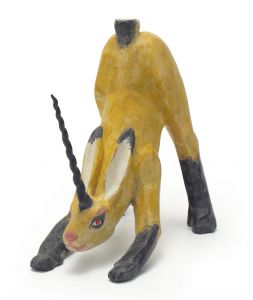 · 2005 · Gips, Stuckmarmor, Farbe, Holz, Feder · 56 × 23 × 41 cm
